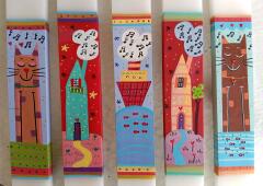 Λαμπάδα ζωγραφισμένη στο χέρι με παιδικά σχέδια, ύψος 25 cm – 24€.