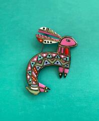 Καρφίτσα λαγός ζωγραφισμένος στο χέρι με ακρυλικά χρώματα και επικάλυψη με υγρό γυαλί, 75€